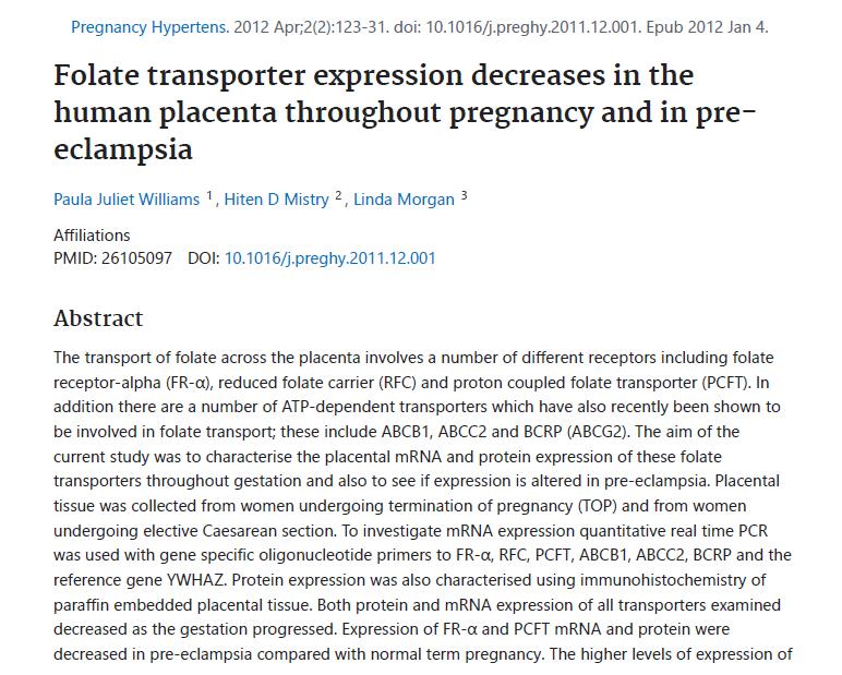 [1] Williams PJ, Mistry HD, Morgan L. Folate Η έκφραση μεταφορέα μειώνεται